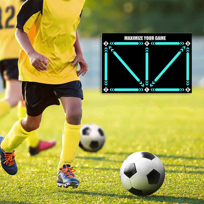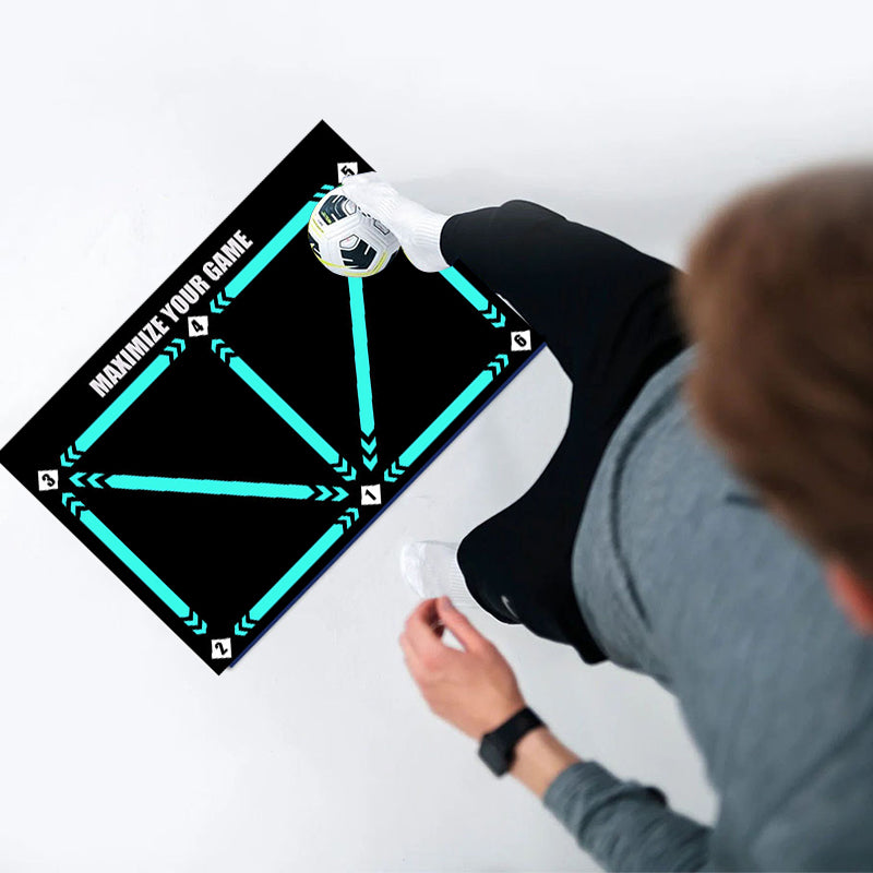 ENTRAÎNEMENT DU JEU DE PIEDS - Ce tapis présente une variété de motifs de pas qui vous guident à travers différents exercices de jeu de pieds. Il vous aide à développer des mouvements rapides et précis, améliorant votre contrôle du ballon et votre maniabilité.