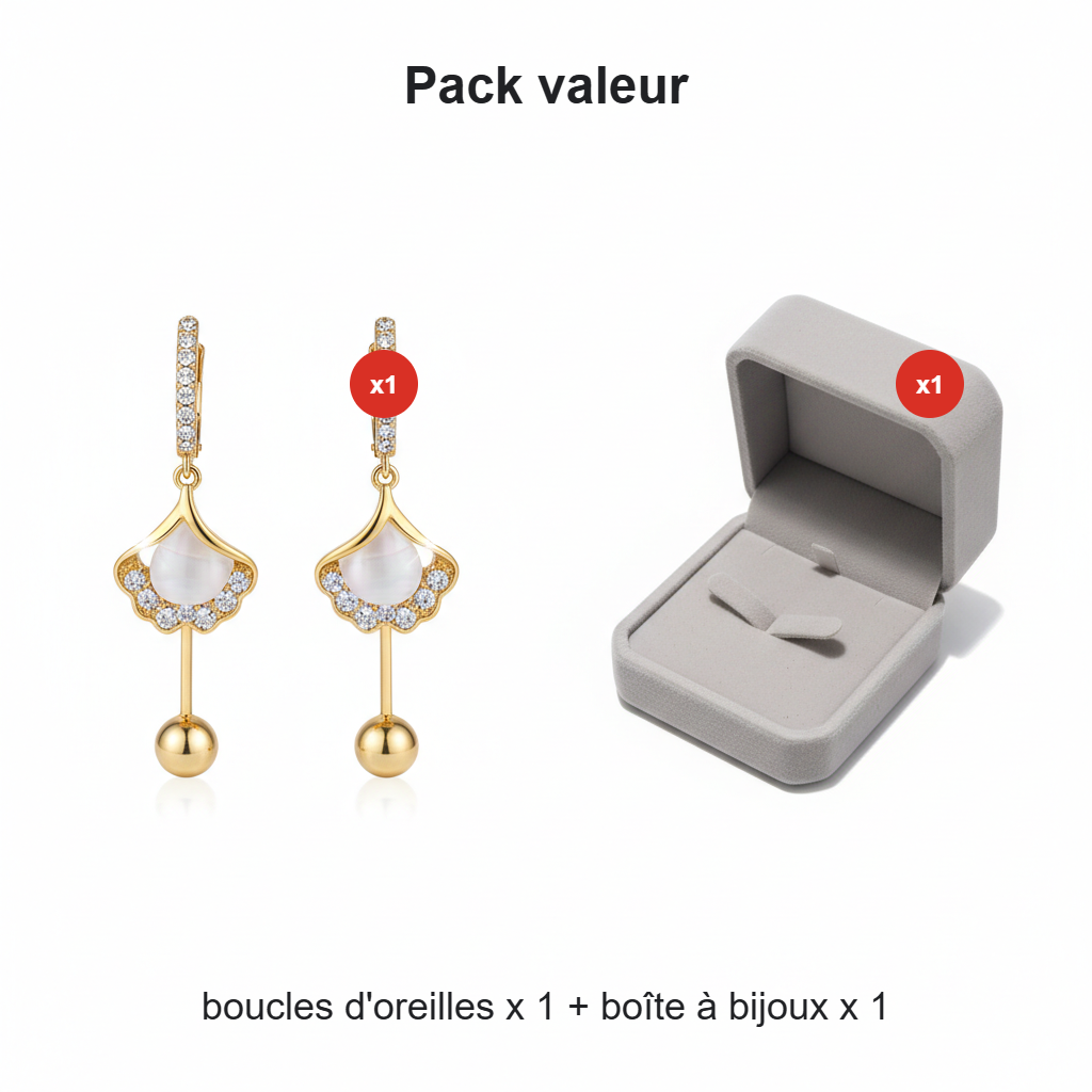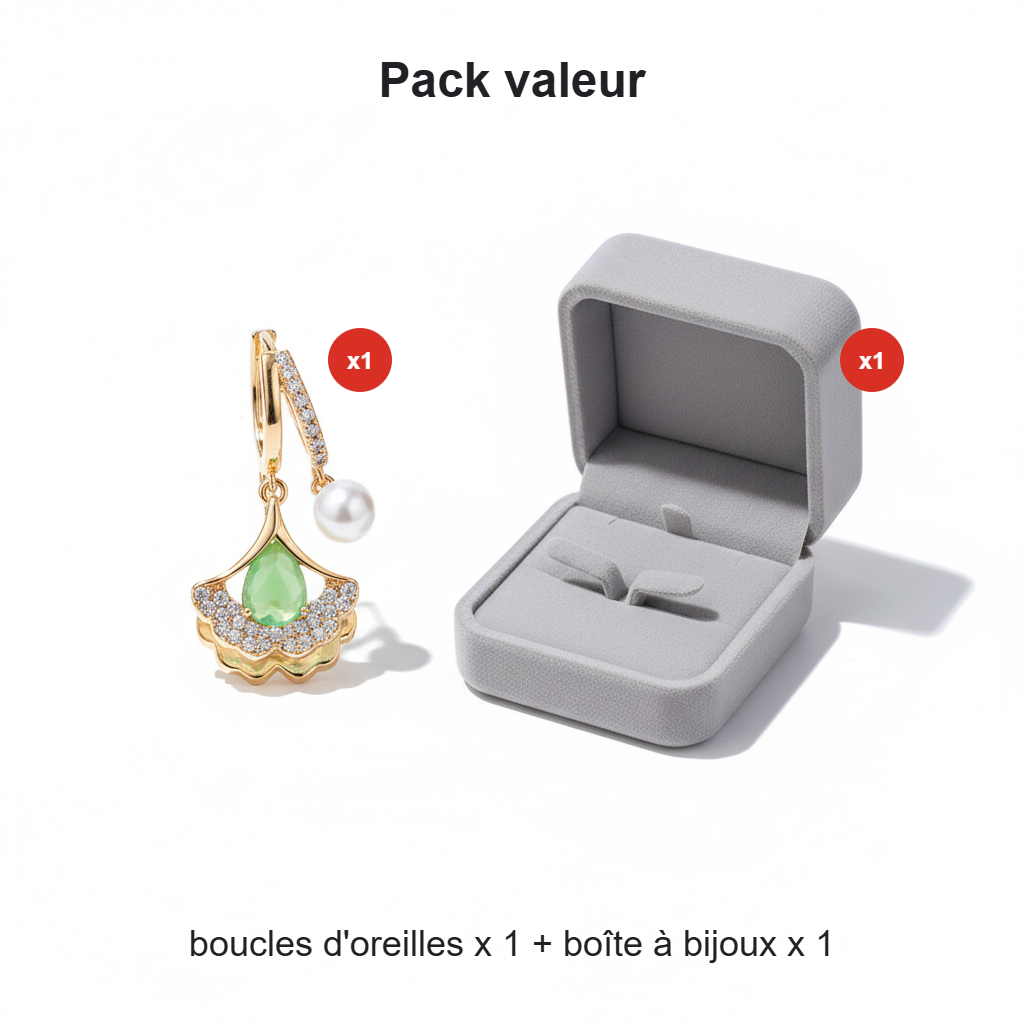 1x - Boucles d'oreilles feuille d'abricot avec perle d'imitation