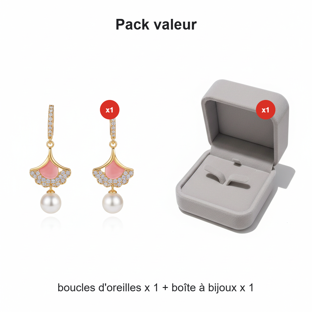 🌸✨ 50% de réduction ! Boucles d’oreilles feuille d’abricot avec perle – Élégance intemporelle & hypoallergéniques