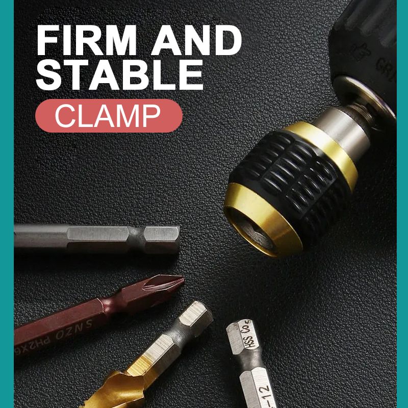 It has a built-in stability lock and high-efficiency spring which clamp the bits firmly for stable drilling without shaking.