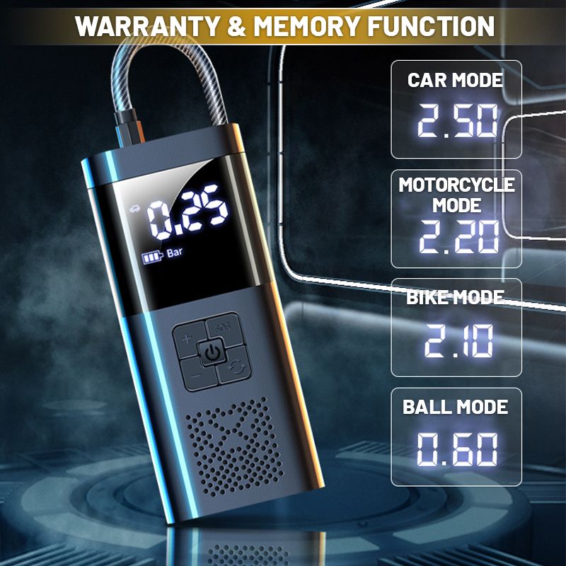 【20s Gonflage rapide et clé de sauvetage SOS】Compréhension en temps réel de l'état de la pression des pneus, mesure précise de la pression avec 0 erreur, gonflage puissant en 10~20s, réglage spécial de la clé de sauvetage SOS pour assurer la sécurité du voyage.