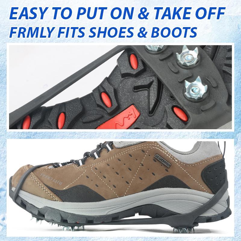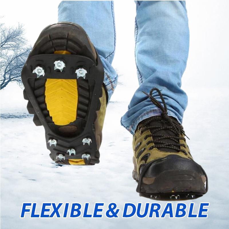 En hiver, les routes sont verglacées et glissantes, et les chutes sont fréquentes. Ces crampons antidérapants possèdent huit pointes sur la semelle. Lorsque vous marchez sur la glace, ils s'agrippent au sol pour assurer une répartition uniforme du poids et éviter de glisser.