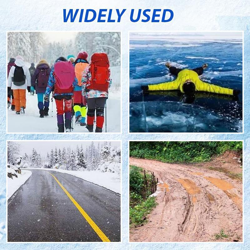 Convient aux hommes et aux femmes de tous âges, y compris les adolescents, les adultes et les seniors. S'utilise sur les terrains en pente, les routes verglacées, l'herbe boueuse et humide ou dans d'autres conditions difficiles, comme la randonnée, l'escalade, la pêche, l'alpinisme et autres activités de plein air, vous protégeant ainsi que votre famille des glissades.