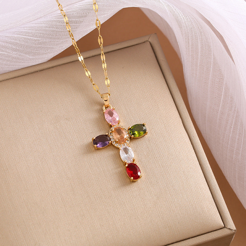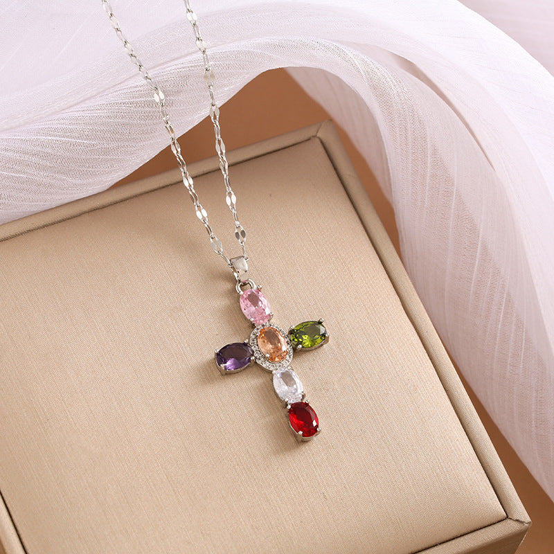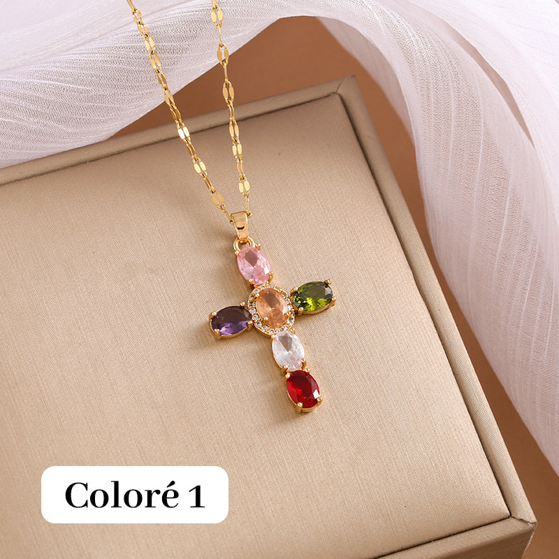 Le paquet comprend : 1 * Collier Croix Coloré en Zircon Scintillant pour Femmes