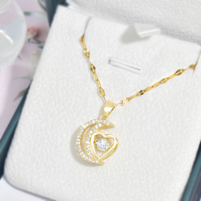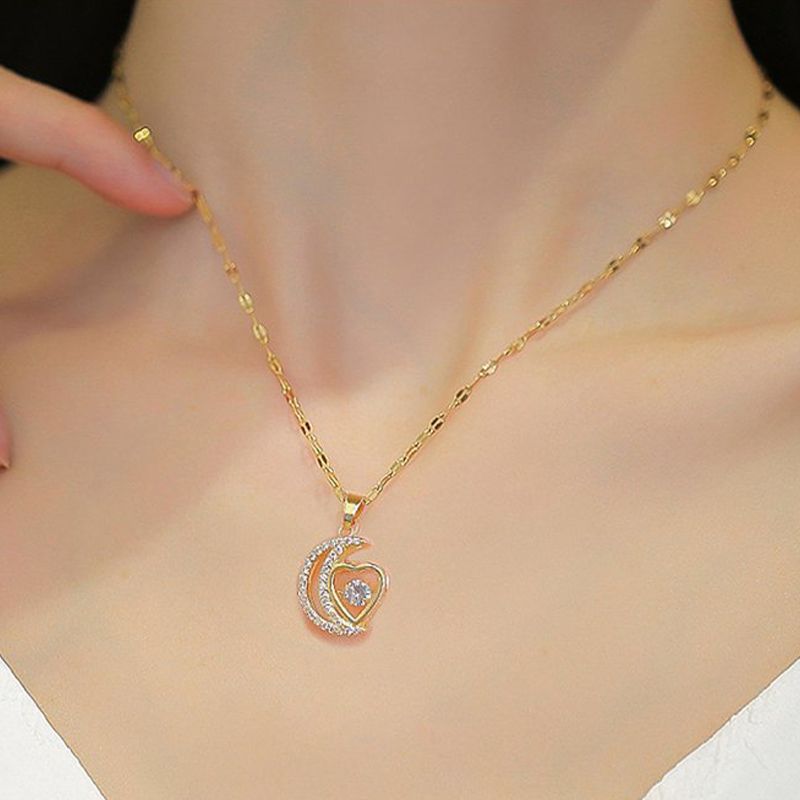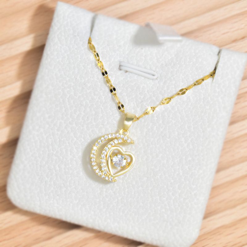 DESIGN MAGNIFIQUE : Ce collier délicat présente un croissant de lune et une forme de cœur, ornés de pierres de zircon étincelantes, créant un look glamour et luxueux.
