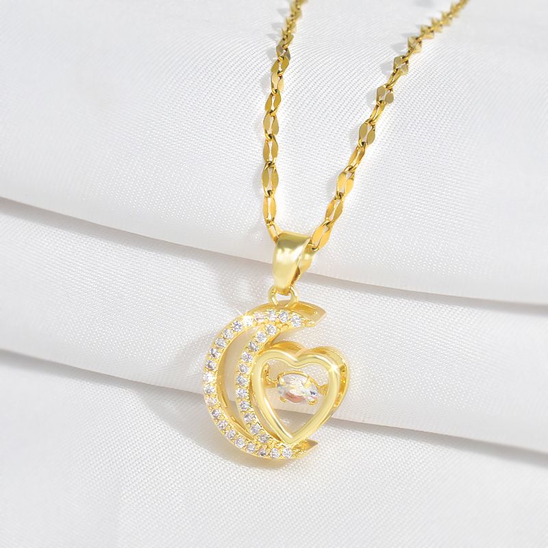 Collier orné de pierre de zircon avec un croissant de lune et de pendentif en forme de cœur