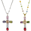 Colorful Rhinestone Cross Pendant Necklaces