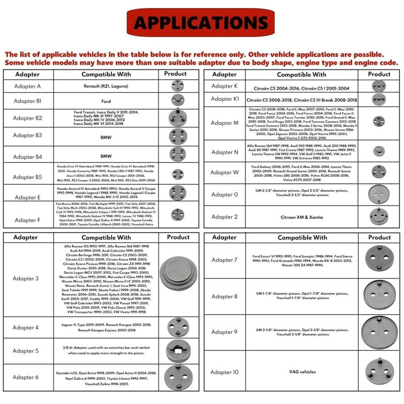 Contenu du colis : 1 × Kit de 24-Pièces d‘Outils de Compression pour Étrier de Frein Pneumatique