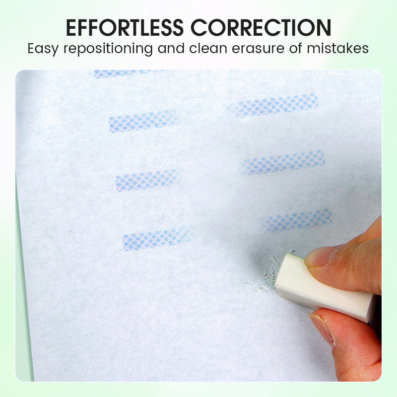 CORRECTION SANS EFFORT – Dites adieu aux erreurs irréversibles grâce à cet adhésif innovant qui permet de repositionner facilement pendant l’application et s’efface proprement. Quelque chose est mal placé ? Il suffit de soulever, ajuster et réappliquer. En cas d’erreur, effacez simplement sans laisser de résidu. Réalisez des compositions parfaites sans stress, tout en économisant du temps et vos précieux matériaux créatifs.