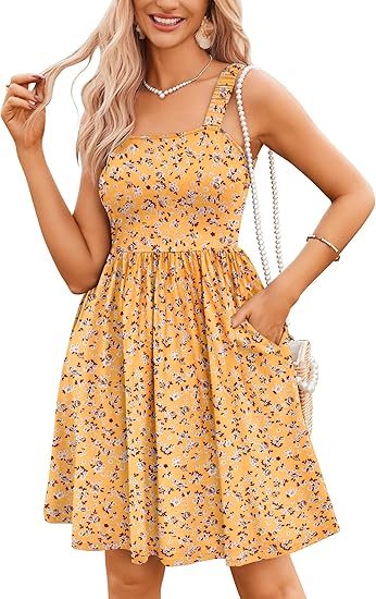 â°Hot Sale 49% OffđWomen's Summer Dresses Casual Square Neck Floral Sundress With Pockets