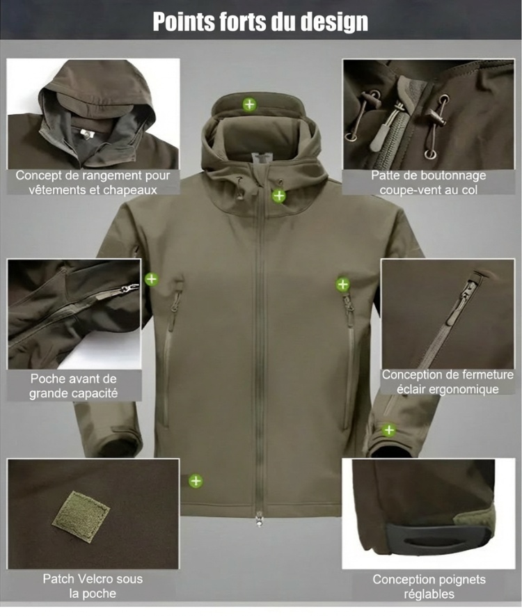 Ensemble veste et pantalon tactiques softshell pour homme