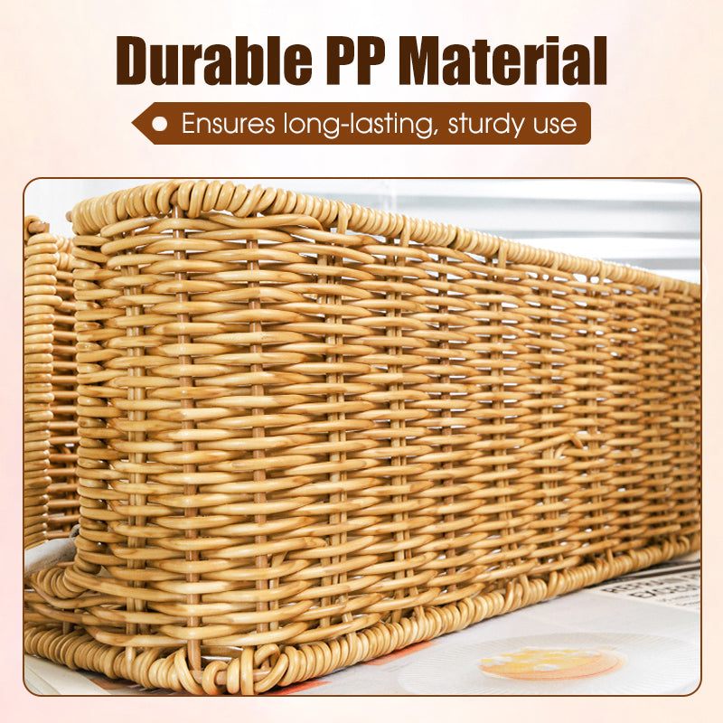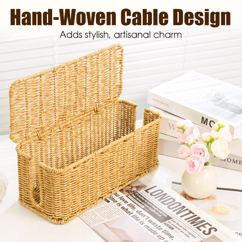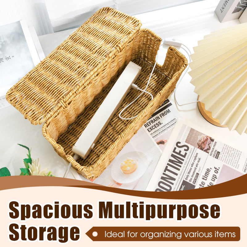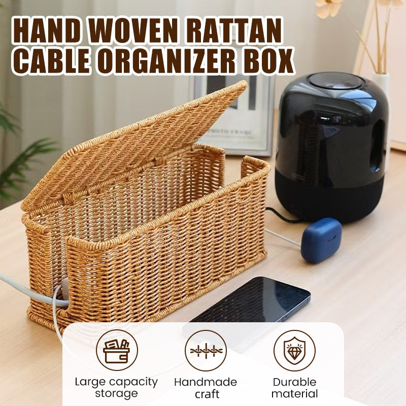 Boîte de rangement de câbles en rotin tressé avec couvercle