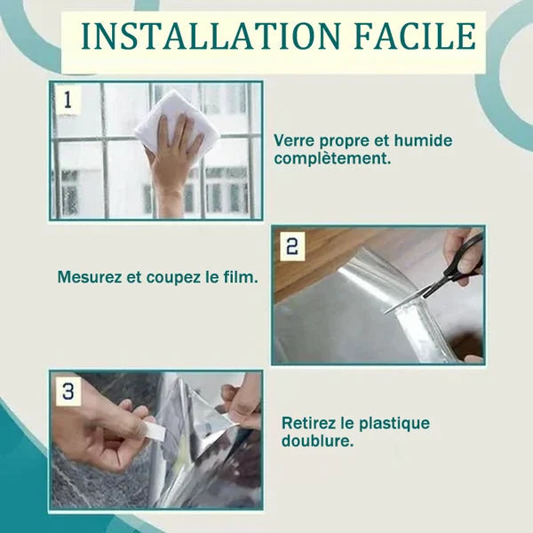 - FACILE Ă INSTALLER - Assurez-vous que la surface de la fenĂȘtre est complĂštement propre et absolument exempte de toute imperfection, n'oubliez pas d'utiliser beaucoup de mĂ©lange savon/eau pour tremper Ă la fois le cĂŽtĂ© adhĂ©sif et la fenĂȘtre.