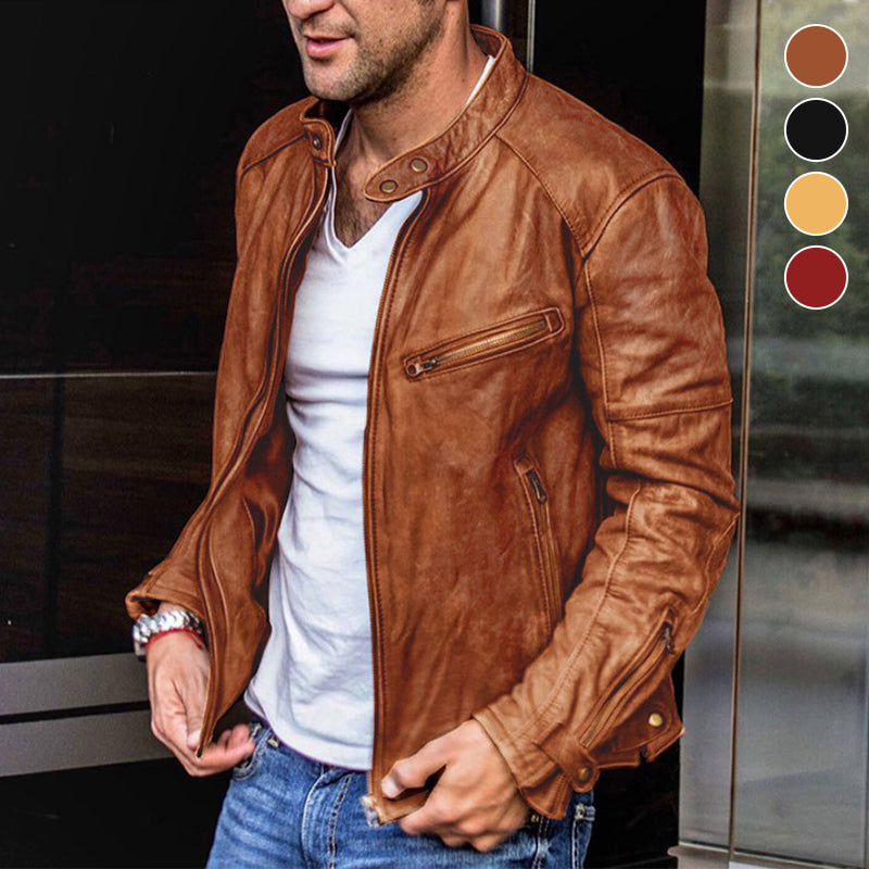Cadeau Pour Hommes : Veste en Cuir de Motard avec Col Punk Rétro et Fermeture Éclair pour Hommes