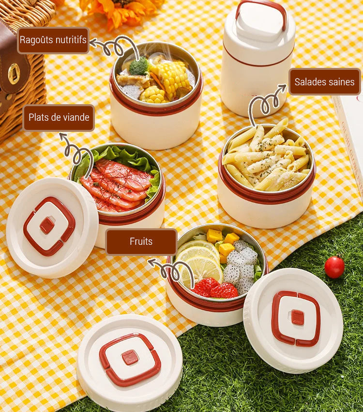 Boîte à déjeuner isolée en acier inoxydable pouvant être micro-ondable