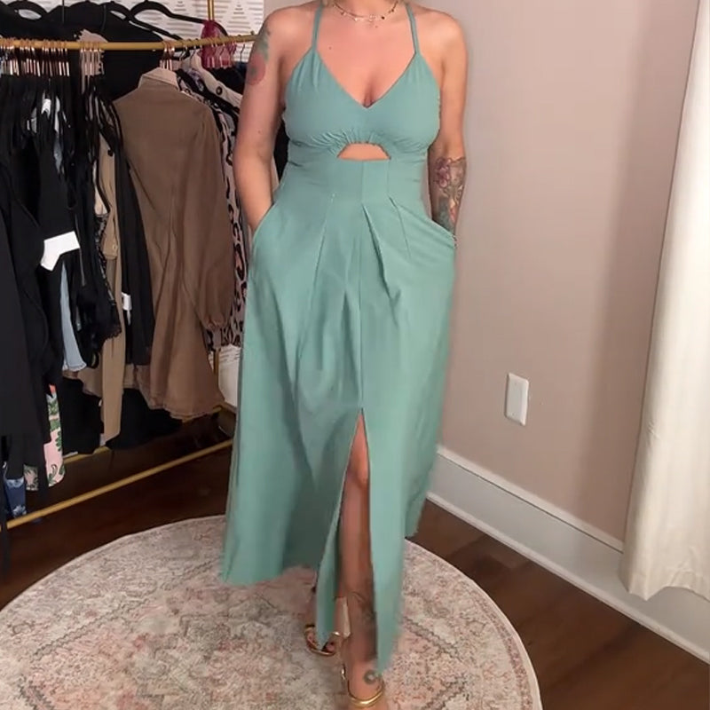 Robe longue à fines bretelles avec découpe frontale pour femmes
