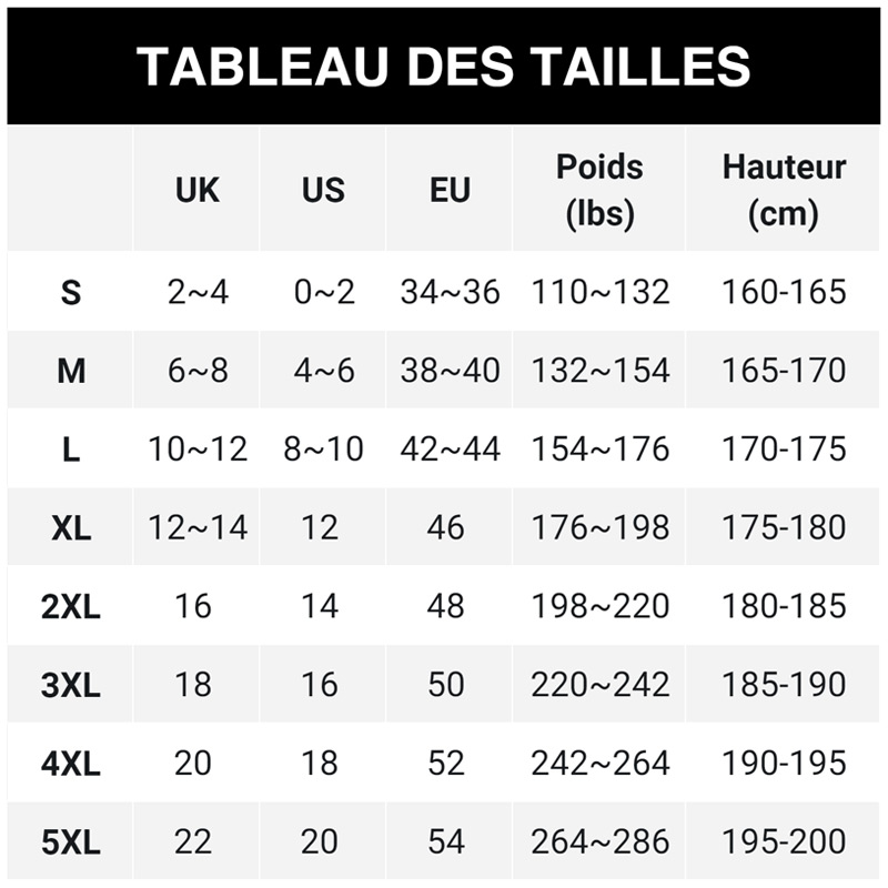 Taille : S à 5XL