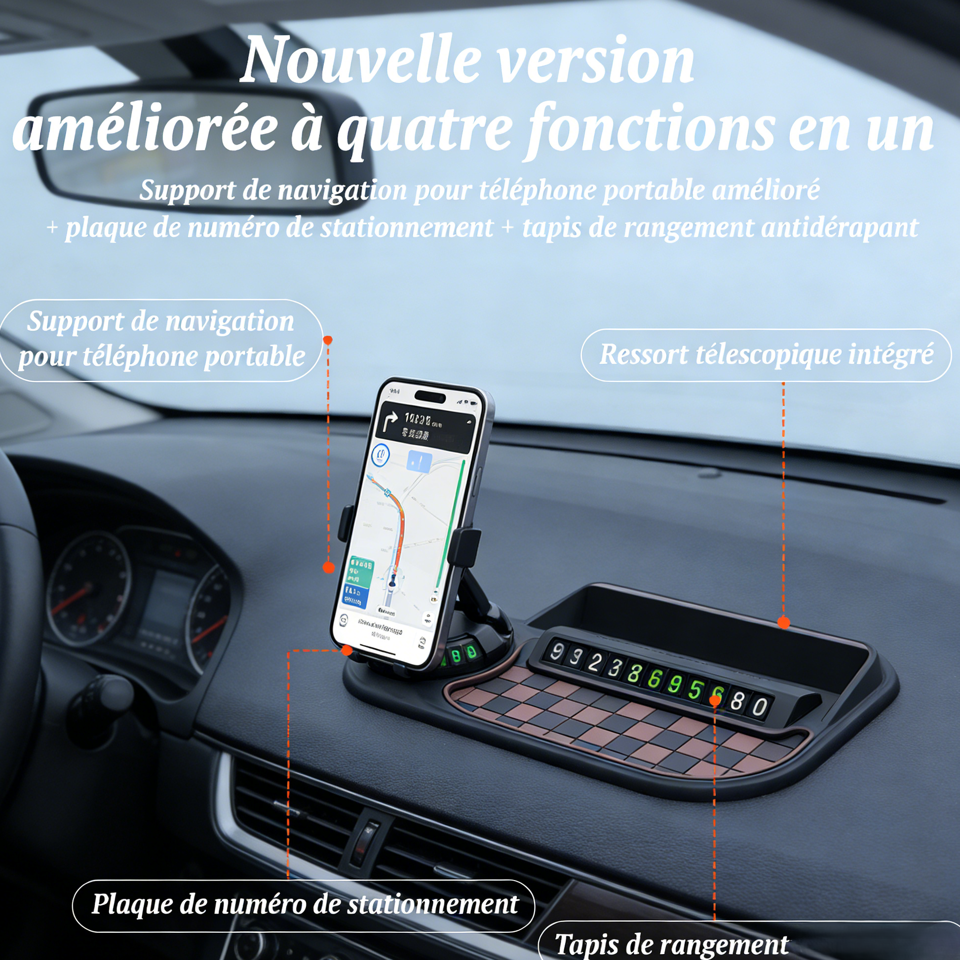 Fonction 4 - en - 1 - il fonctionne non seulement comme un support de téléphone efficace pour garder votre appareil en toute sécurité dans le champ de vision de la navigation et des appels mains libres, mais comprend également un espace dédié pour les cartes de visite. En outre, ce support dispose également de plaques d'immatriculation cachables et d'un rack de rangement pratique.