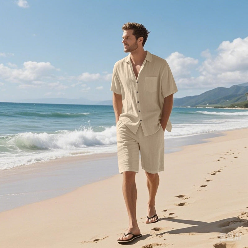 🏖️Summer Specials🌴 Men's Breathable Beach Outfit – Short Sleeve & Shorts