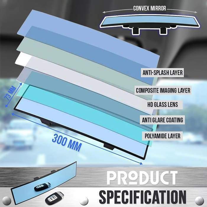 ANTI-SPLASH - Double-sided tape is pasted on the back of the mirror. Avoid the broken glass flying out of the frame when the mirror surface is impacted, injuring you and passengers.