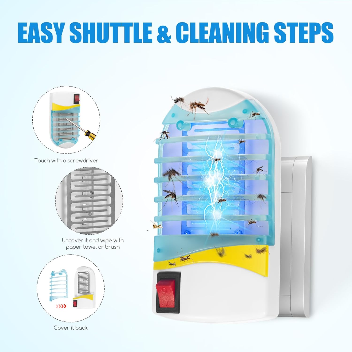 Utilise une lumière bleue UV pour attirer les insectes volants rapidement et efficacement, sans perturber votre sommeil ou votre travail.
