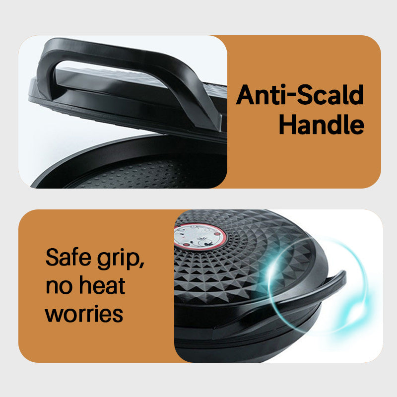 POIGNÉE ANTI-BRÛLURE & SYSTÈME DE REFROIDISSEMENT – Utilisation sûre et confortable. Dotée d’une poignée anti-brûlure ergonomique et d’orifices de ventilation sur le dessous, cette plaque de cuisson assure la sécurité même à haute température. Son design réduit les risques de brûlure tout en garantissant une durabilité et un confort d’utilisation à long terme.