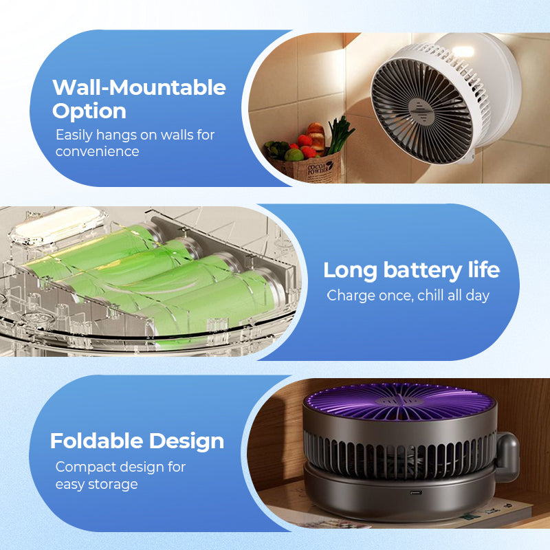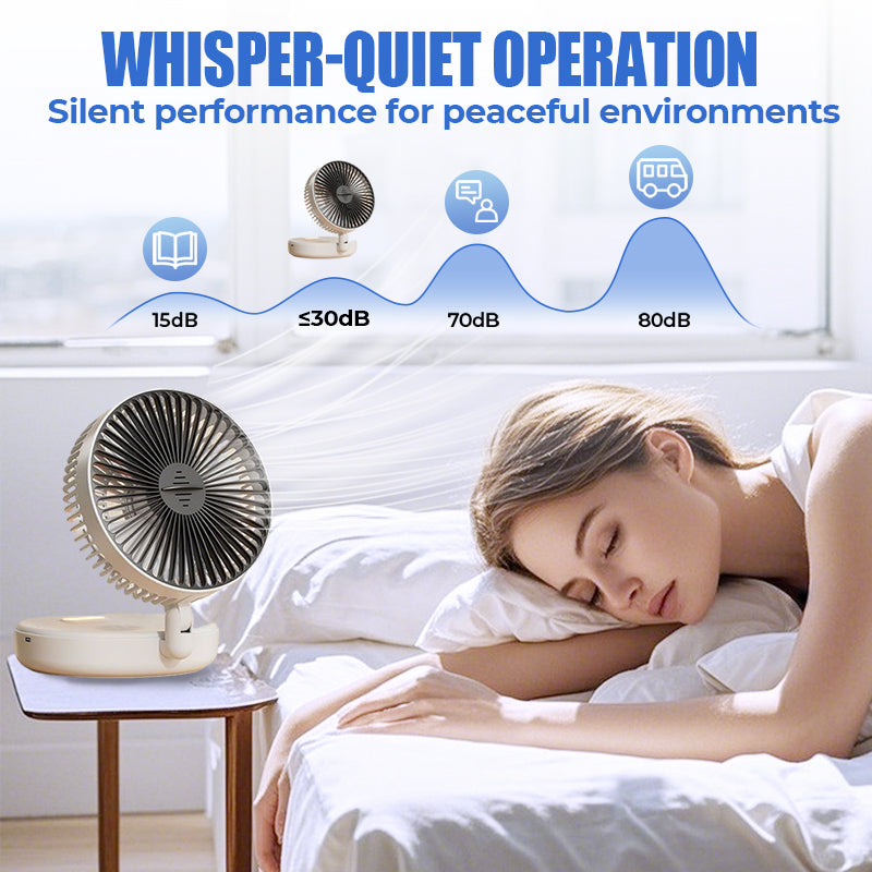 INCLINAISON RÉGLABLE À 90 DEGRÉS – Bénéficiez d’un contrôle flexible du flux d’air grâce à l’inclinaison réglable à 90°, permettant un rafraîchissement ciblé. Lorsqu’il n’est pas utilisé, le ventilateur se replie de manière compacte pour un rangement facile — idéal pour la maison, le bureau ou les déplacements.