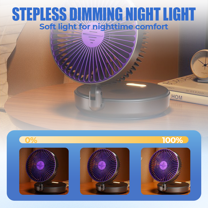 VEILLEUSE À VARIATION CONTINUE – Équipé d’une veilleuse à luminosité réglable en continu, ce ventilateur diffuse une lumière douce idéale pour la nuit. Ajustez l’intensité pour créer une ambiance apaisante tout en restant au frais et à l’aise.