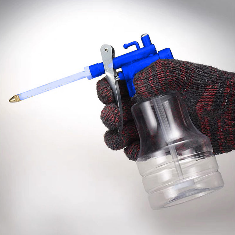 POIGNÉE ERGONOMIQUE EN ALLIAGE: Le bidon d'huile est doté d'une poignée ergonomique en alliage, conçue pour une pression confortable et sans effort. Cela permet un contrôle précis de la distribution de l'huile, facilitant ainsi une lubrification douce et régulière.
