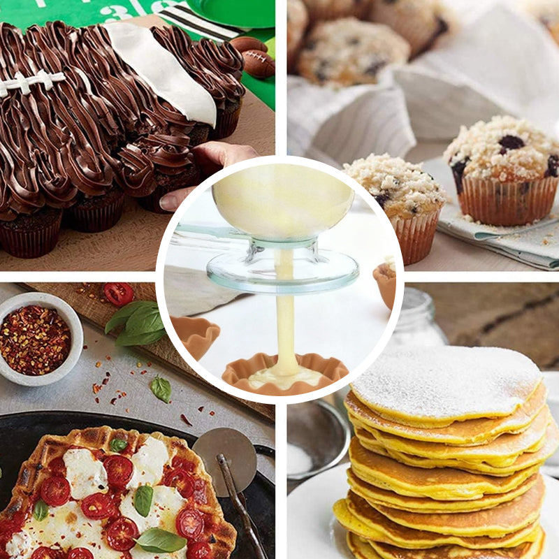 DISTRIBUTION EFFICACE DE LA PÂTE - Ce distributeur manuel permet un versement contrôlé et sans gâchis pour diverses pâtes. Il suffit de presser la poignée pour libérer la quantité exacte directement sur votre surface de cuisson ou dans des moules.
