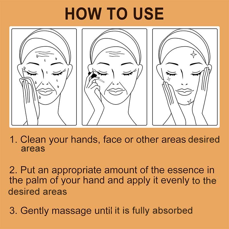 Versez une quantité appropriée d'essence dans la paume de votre main et appliquez uniformément.