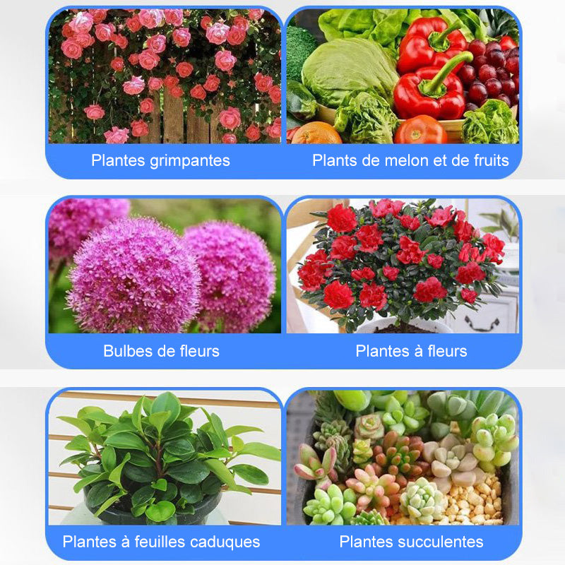 Pour un jardin beau et luxuriant, il faut des plantes en bonne santé. La lumière du soleil et l'eau sont importantes, mais les nutriments le sont aussi. Tout comme nous maintenons notre santé avec une solution nutritive universelle lorsque nous ne mangeons pas correctement, les plantes ont besoin d'engrais pour obtenir les nutriments qu'elles ne peuvent pas tirer d'une terre maigre.