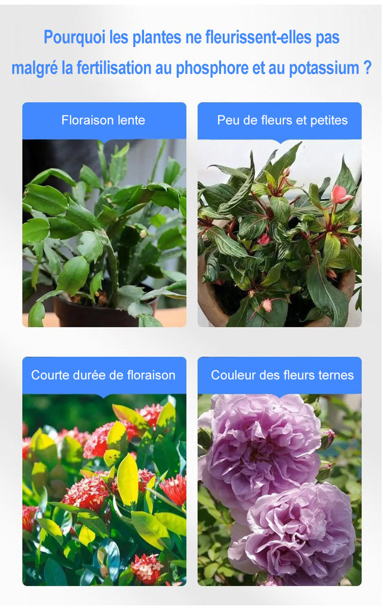 Largement utilisée dans la culture des fleurs, des plantes ornementales, des succulentes et des jeunes arbres fruitiers, cette solution nutritive universelle pour plantes en pot fleuries contient tous les nutriments dont vos plantes ont besoin pour leur croissance. Elle a été conçue pour améliorer la vitalité des plantes, la verdure et la croissance du gazon, le développement des fleurs et les rendements au jardin. Vous pouvez utiliser cet engrais pour votre pelouse, vos légumes et vos fleurs, sans vous soucier des déchets ou des produits chimiques nocifs. Cet engrais organique a été conçu pour augmenter la résistance et la tolérance à la sécheresse de vos plantes.