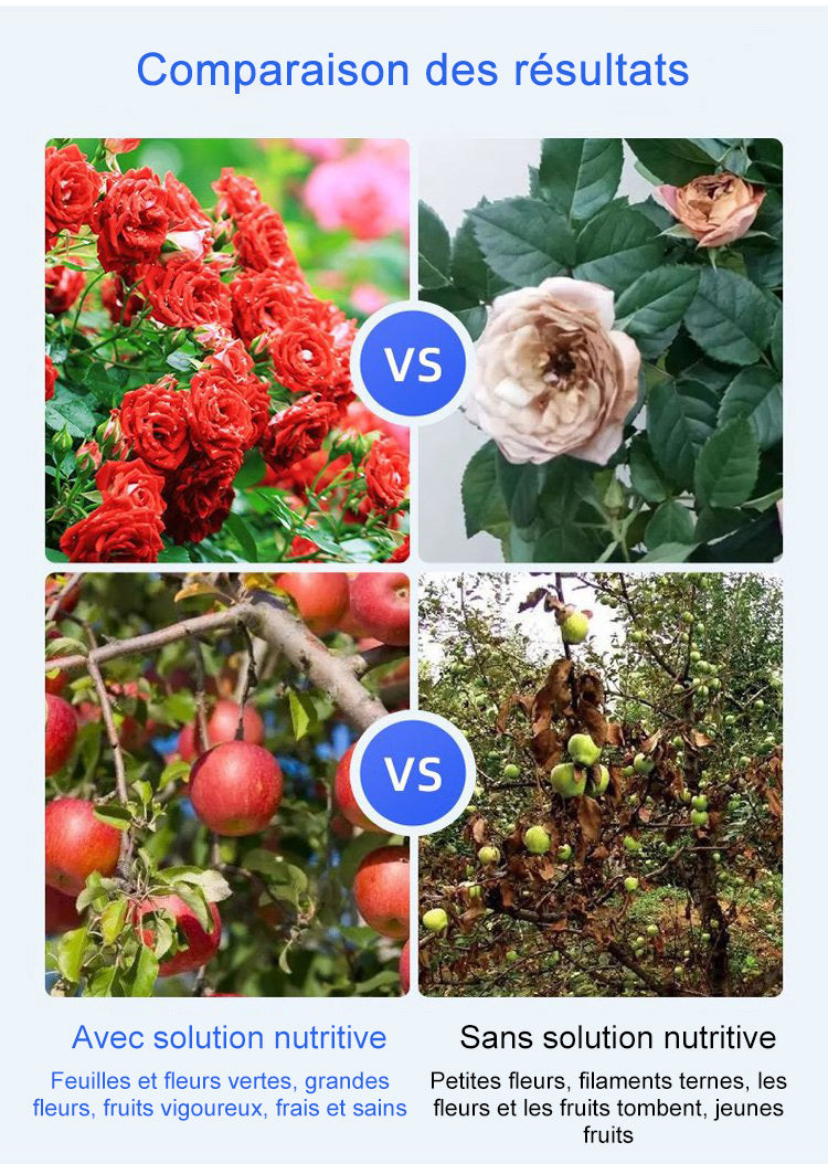 Plus besoin de vous donner du mal avec votre propre jardin. Avec notre solution nutritive universelle, vous pouvez bien prendre soin de vos précieuses plantes en fournissant peu d'efforts !