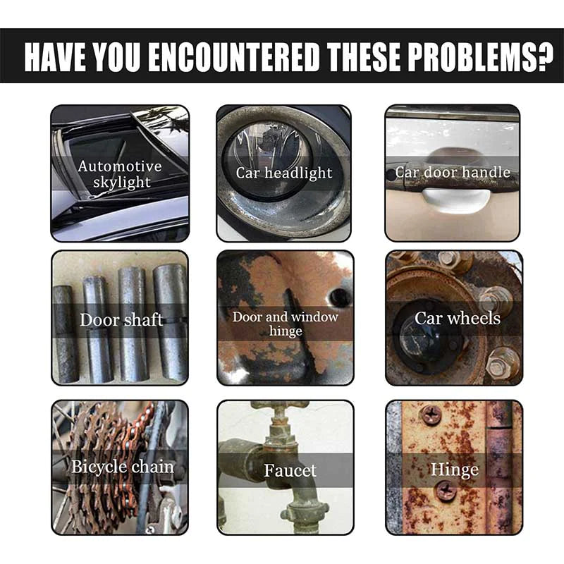 Ne vous inquiétez pas! Notre "spray antirouille pour voiture" vous aidera à résoudre facilement le problème. Idéal pour la rouille des outils, des métaux, de la fonte, des pièces de voiture, etc.