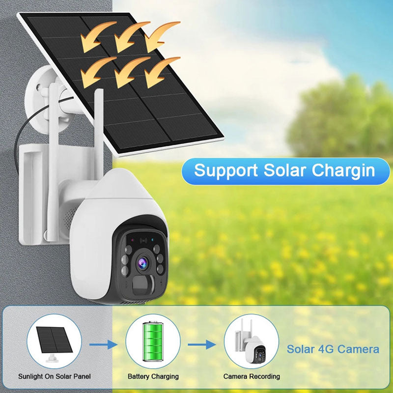 ALIMENTATION DUALE : Cette caméra utilise un système d'alimentation à double mode, tirant parti de l'énergie solaire par temps ensoleillé et passant à l'alimentation par batterie lors des jours de pluie, garantissant un fonctionnement continu et réduisant vos factures d'électricité.