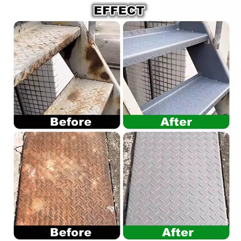 Notre agent de conversion de rouille est largement utilisé. Vous pouvez l'utiliser sur les clôtures en fer, les pièces rouillées et les décorations de terrasse en fer, ce qui peut réduire le coût de l'élimination de la rouille et augmenter l'efficacité du travail.