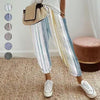 Women's linen cotton striped trousers have a casual and comfortable style with an elasticated waistband and wide legs. Made from a blend of cotton and linen, it is perfect for everyday wear and can be combined with different tops for a simple yet fashionable look.
