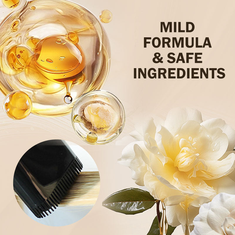 COUVERTURE DES CHEVEUX GRIS & NUTRITION - Il ne se contente pas de couvrir les cheveux gris, il nourrit également vos mèches avec de l'huile de jojoba, de l'huile d'olive et de l'huile de camélia. Cette combinaison favorise des cheveux sains tout en offrant une couleur naturelle et riche.