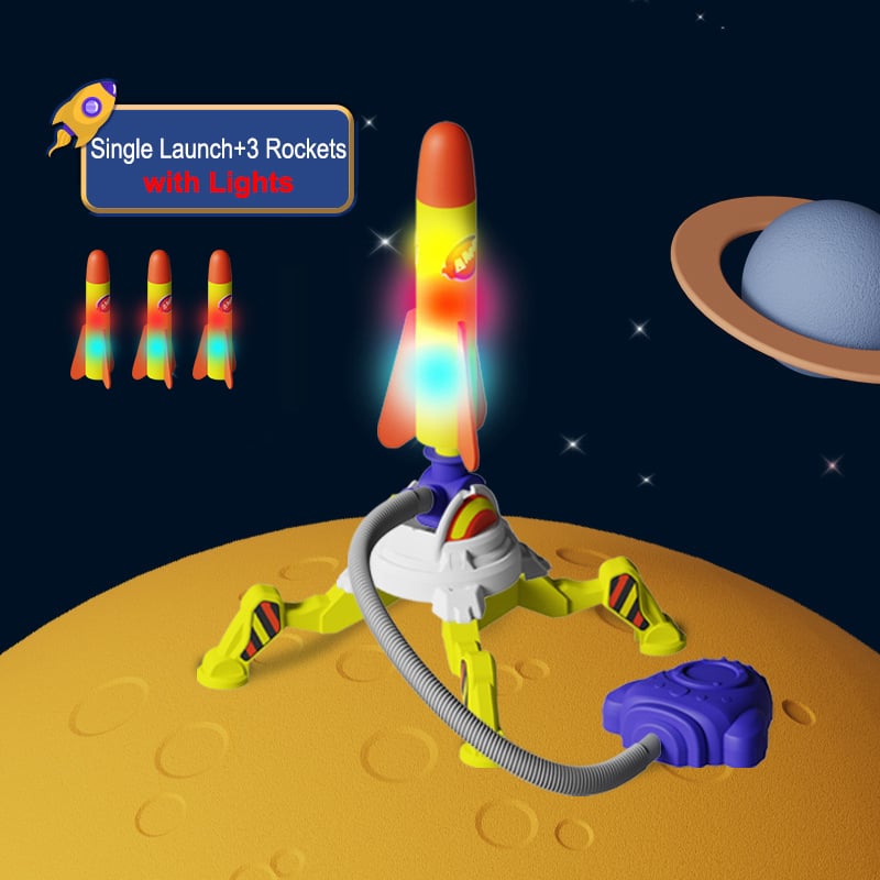 Courez, sautez, piétinez !! Les enfants peuvent s’amuser en toute autonomie pendant des heures, de jour comme de nuit, avec le lanceur de fusées.