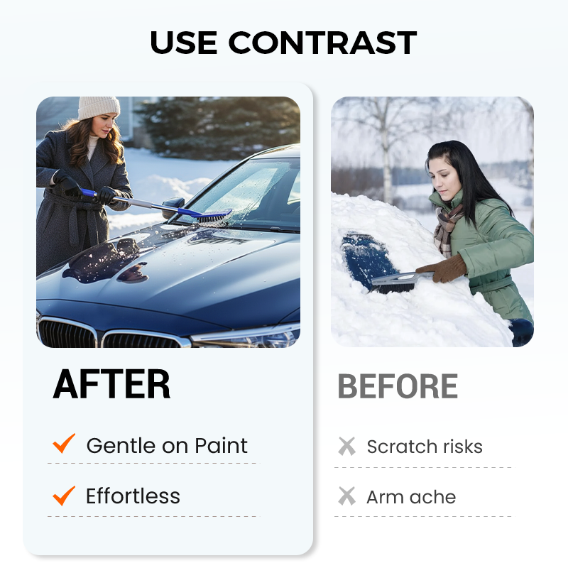 POILS QUI PRÉSERVENT LA PEINTURE - Dotée de poils épais et doux aux extrémités fourchues, elle enlève efficacement la neige sans rayer la peinture ou les vitres de votre voiture. Vous pouvez nettoyer votre véhicule en toute confiance, préservant ainsi sa finition et sa valeur.