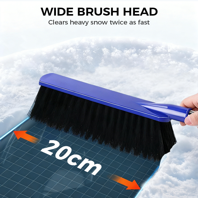 TÊTE DE BROSSE LARGE - La tête de brosse de 20 cm de large dégage efficacement de grandes surfaces. Cela réduit considérablement le temps et l'effort nécessaires pour balayer la neige épaisse du toit, du capot et des vitres de votre voiture.