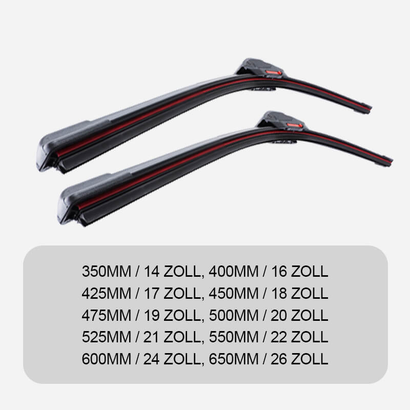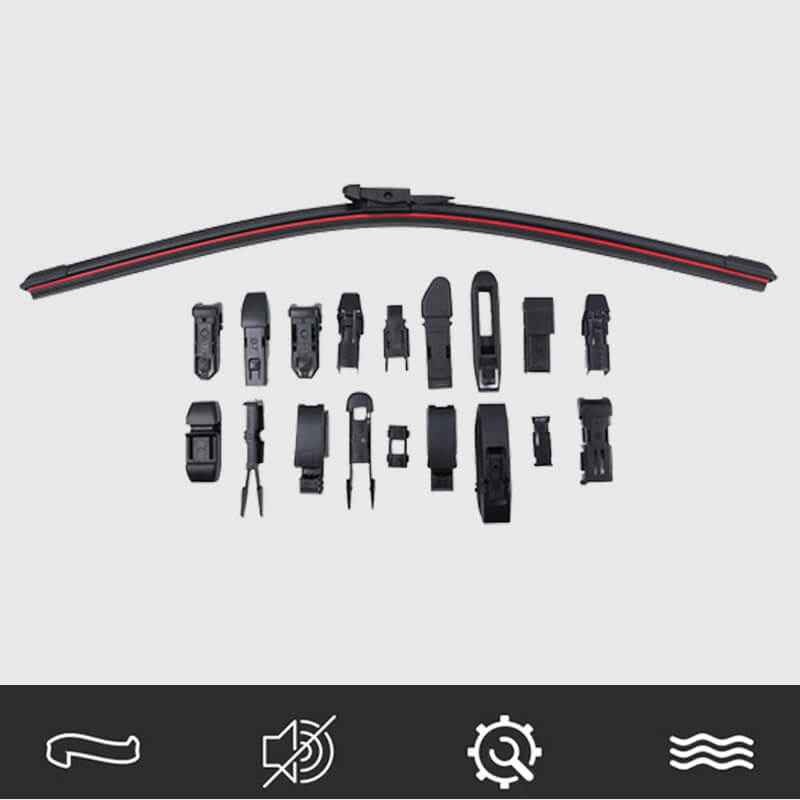 DOUBLE LAME EN CAOUTCHOUC - Nous avons amélioré l'essuie-glace en passant d'une lame à deux lames. Une lame est destinée à éliminer la pluie, l'autre à éliminer les traces. Ce design assure une visibilité cristalline sous une forte pluie. Les lames sont fabriquées en caoutchouc naturel AAA+, résistant à l'oxydation et à la corrosion.