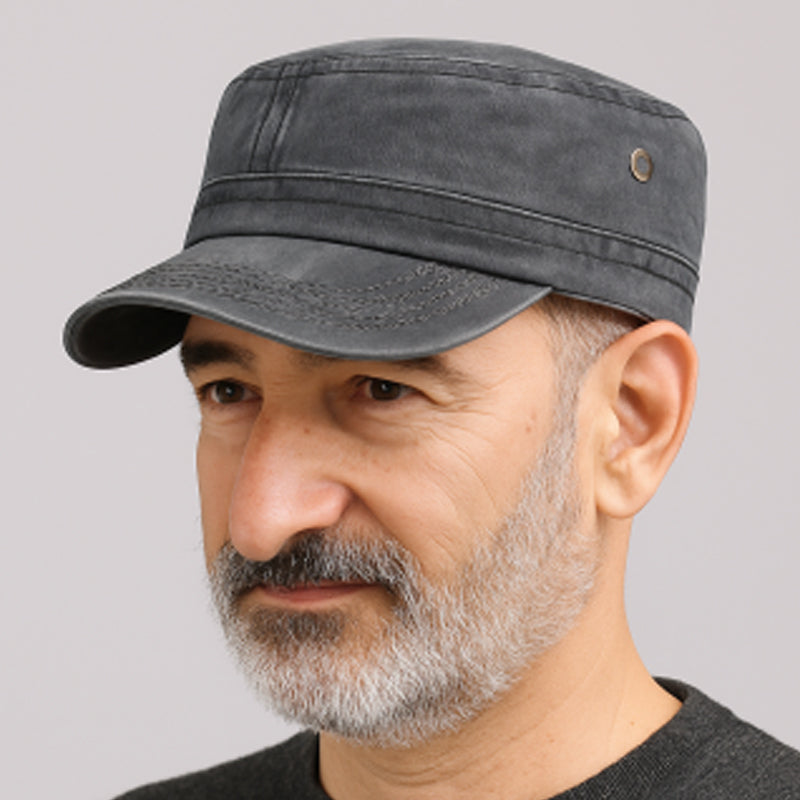 STYLE ROBUSTE, CHARME INTEMPOREL – Affichez une allure affirmée avec cette casquette à couronne plate inspirée du style militaire. Ses lignes nettes et sa silhouette structurée offrent un style audacieux et direct. C’est la fusion parfaite entre utilité classique et modernité décontractée.