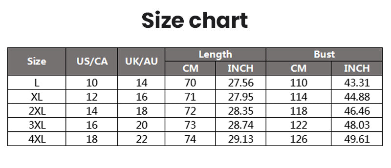 - Taille : L, XL, 2XL, 3XL, 4XL