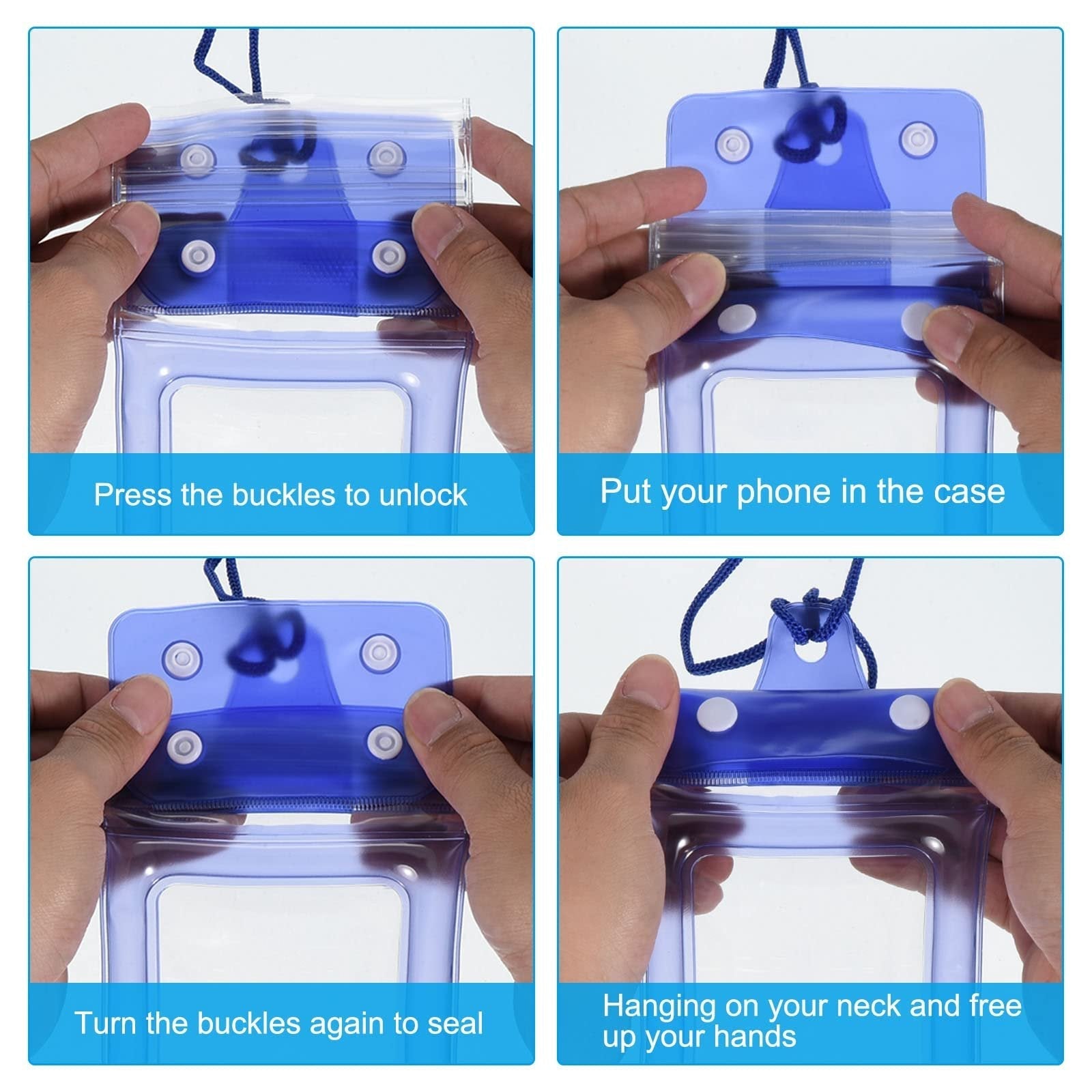 ÉTANCHÉITÉ PROFONDE ET FERMETURE HERMÉTIQUE : Cette pochette pour téléphone est soigneusement conçue pour offrir une étanchéité optimale, avec une fermeture robuste qui protège efficacement contre toute infiltration d’eau. Parfaite pour une utilisation prolongée dans les environnements humides.