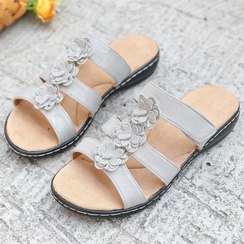 Contenu du colis : 1 paire de sandales à enfiler à ornements floraux pour femmes