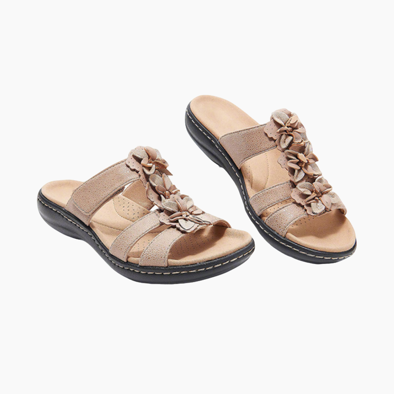 MATIÈRE ET DESIGN DE LA TIGE – Les sandales sont dotées d'une tige souple avec plusieurs sangles sur le dessus du pied. Chaque bride est délicatement ornée de décorations florales, apportant une touche d’élégance féminine et de charme au design global.