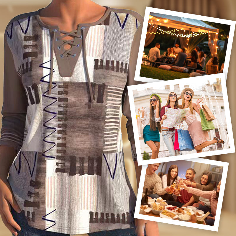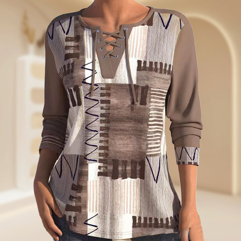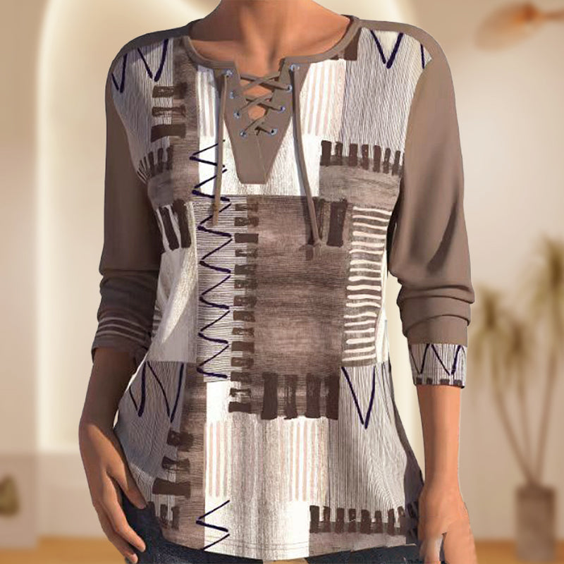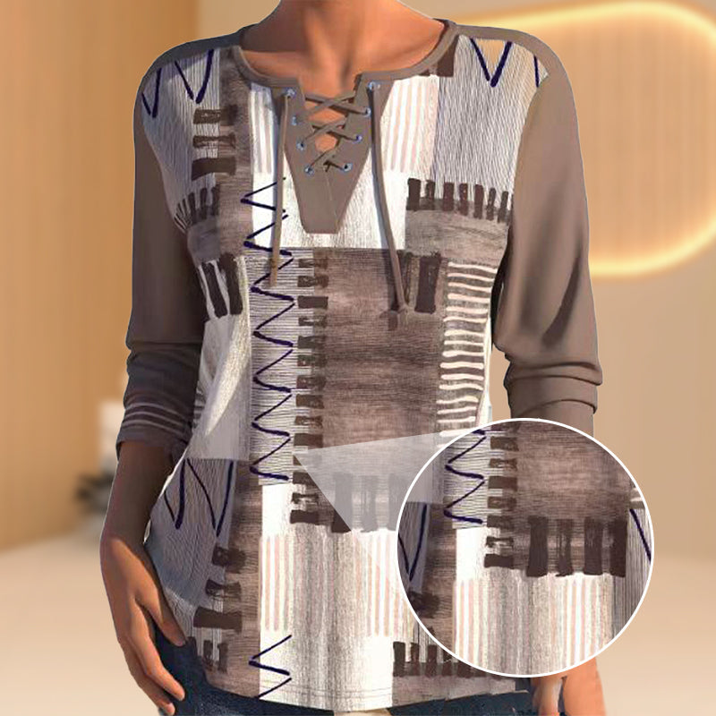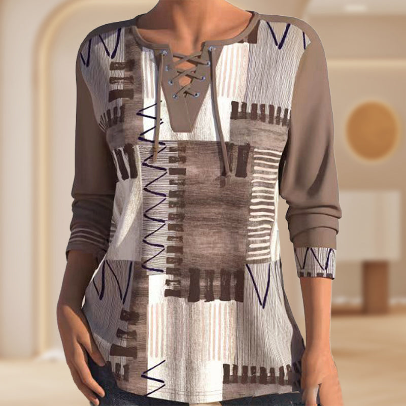 Haut à Manches Longues avec Imprimé Géométrique et Nœud à l'Avant pour Femmes