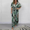 Combinaison d'été à taille extensible pour femmes, imprimé feuilles
